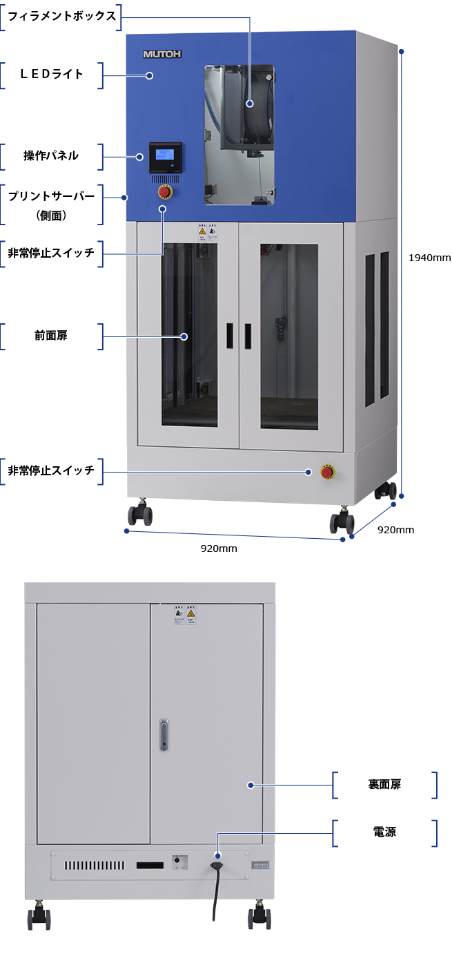 | 外形寸法 | W × D × H | 920 × 920 × 1,940 mm(外部突起部は含まず) |