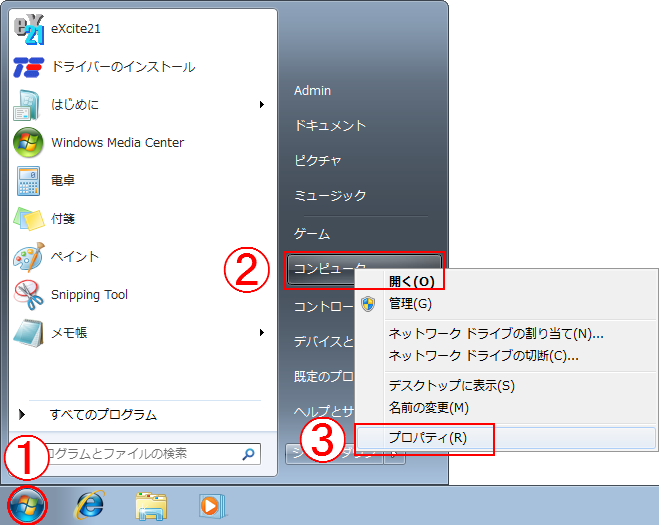 3.[プロパティ]をクリックしてシステムのプロパティ画面を表示させます。